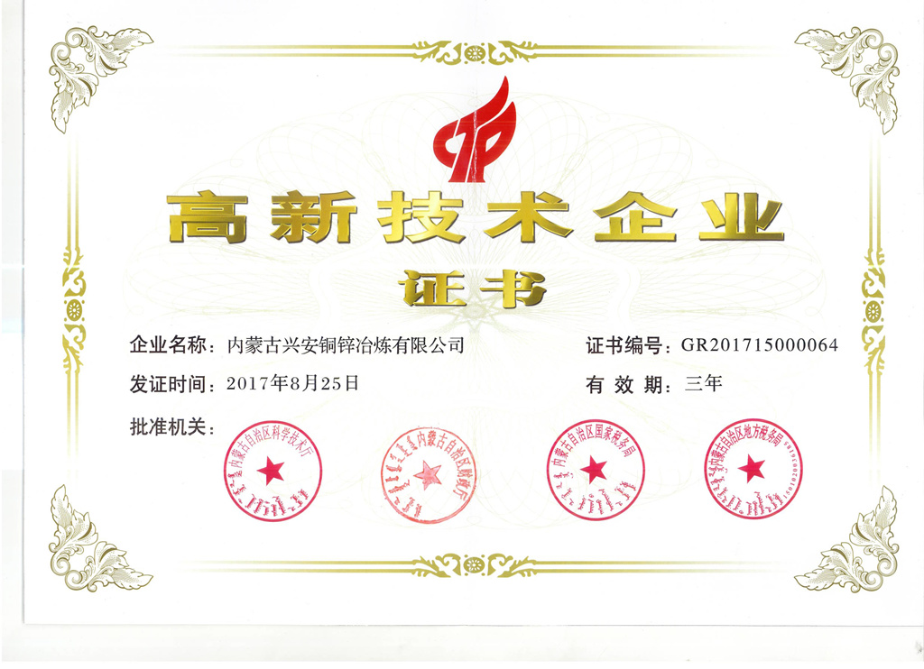 內(nèi)蒙古興安銅鋅冶煉有限公司位于內(nèi)蒙古自治區(qū)錫林郭勒盟白音華經(jīng)濟(jì)開(kāi)發(fā)區(qū),是一家以銅、鋅冶煉為主的有色冶金企業(yè)。公司擁有自治區(qū)級(jí)企業(yè)技術(shù)中心,累計(jì)獲得38項(xiàng)專(zhuān)利,是內(nèi)蒙古自治區(qū)高新技術(shù)企業(yè)。公司堅(jiān)持以發(fā)展企業(yè)文化提升核心競(jìng)爭(zhēng)力,對(duì)內(nèi)凝聚起了務(wù)實(shí)奮進(jìn)的企業(yè)氛圍,對(duì)外樹(shù)立起了良好的社會(huì)形象。同時(shí),公司積極履行社會(huì)責(zé)任,實(shí)現(xiàn)了經(jīng)濟(jì)效益與社會(huì)效益的協(xié)調(diào)統(tǒng)一,先后獲得“五一勞動(dòng)獎(jiǎng)狀”,“全區(qū)就業(yè)先進(jìn)企業(yè)”盟旗兩級(jí)“民族團(tuán)結(jié)進(jìn)步模范集體”稱(chēng)號(hào),“發(fā)展工業(yè)經(jīng)濟(jì)突出貢獻(xiàn)企業(yè)”稱(chēng)號(hào),是美麗的烏珠穆沁草原上現(xiàn)代化工業(yè)企業(yè)的代表。