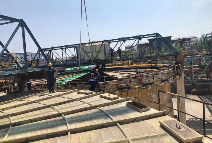 此次大修過程中,分廠積極進(jìn)行了設(shè)備革新,將綜合回收車間的壓濾機(jī)由1000型更換成1250型,凈液車間完成了鋅粉庫電動(dòng)葫蘆的更換,電解車間自動(dòng)剝鋅機(jī)1#機(jī)整體進(jìn)行重新校正,對(duì)過度磨損機(jī)構(gòu)機(jī)件進(jìn)行更換或修復(fù),多項(xiàng)檢修工作的順利完成,不僅消除了設(shè)備運(yùn)行隱患,提高了檢修效率,也大幅提升了剝鋅機(jī)生產(chǎn)線的自動(dòng)化和智能化水平。