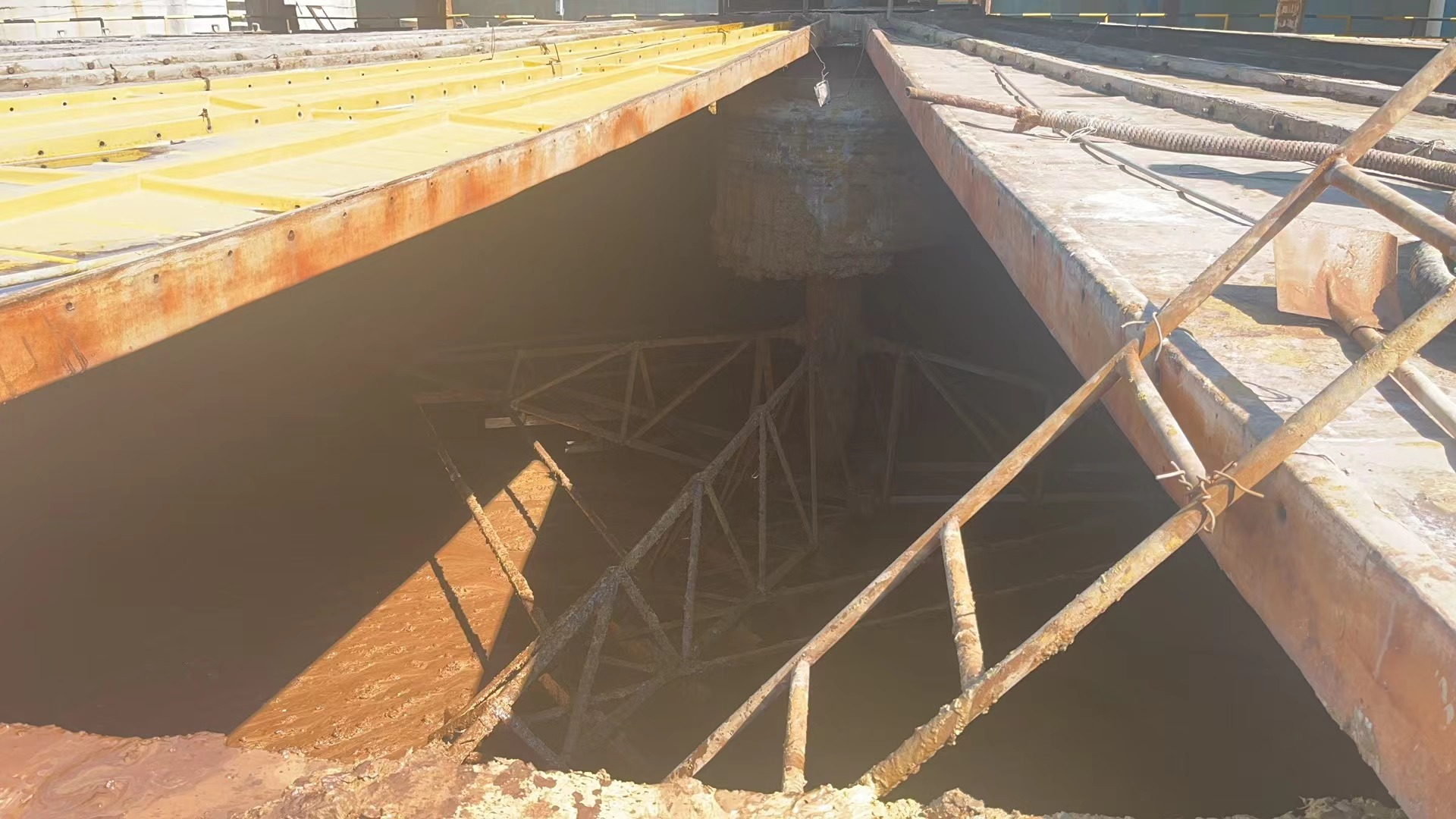 此次主要突擊清理浸出車間6號(hào)濃密機(jī)圍堰區(qū)域。針對(duì)直徑21米的濃密機(jī),溢流堰處的積渣過(guò)多,存在一定的安全隱患,并有可能影響系統(tǒng)穩(wěn)定生產(chǎn)的實(shí)際問(wèn)題,煉鋅分廠提前謀劃,成立清理突擊隊(duì),有效利用生產(chǎn)的間隙時(shí)間,開(kāi)展了全面的清理工作,為年度大修期間濃密機(jī)的清理工作唱響了前奏。