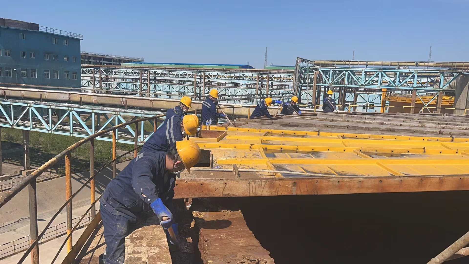 近日,按照公司黨委提出的“黨建+6S”工作指導(dǎo)方針,煉鋅分廠迅速行動(dòng),精心組織了浸出車間濃密機(jī)溢流堰積渣的專項(xiàng)突擊清理行動(dòng)。